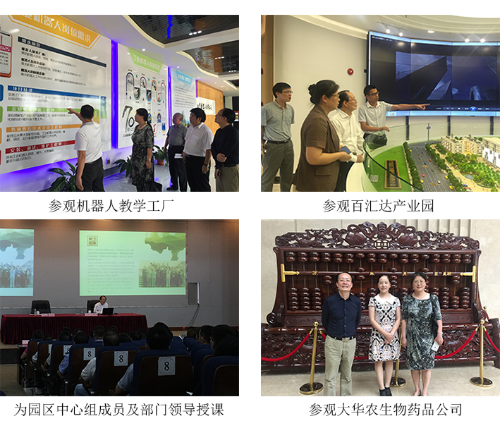 本次调研及讲座期间,东方智库专家组一行先后考察了广东工商职业学院机器人学院、肇庆大华农生物药品有限公司、肇庆市农科所、肇庆高邦聚酯有限公司等高新区重点企业和人才服务代表机构,并通过深度的考察调研,为双方下一步的合作奠定了基础。