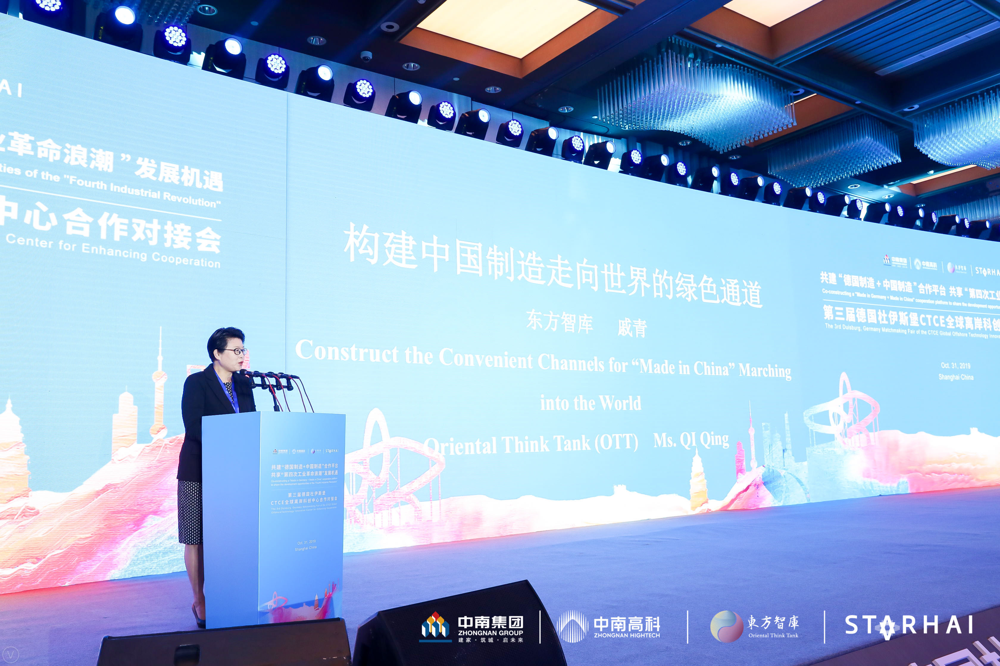 东方智库戚青院长在致辞时指出,“德国工业4.0”的提出对全球工业制造业有着莫大的贡献,在“一带一路”的倡议下,两国制造业迎来更具广度和深度的合作。中南高科产业集团总裁丛学丰说,中南高科作为中南集团的战略新兴板块,愿景是成为服务全球制造业的超级平台,以“推动区域产业升级、助力制造企业腾飞”为目标,以“打造新兴产业园区”为基础,拥有“产业资源导入”和“产业发展服务”两大核心竞争力,已布局中国42城、57园,链接10万+企业资源。